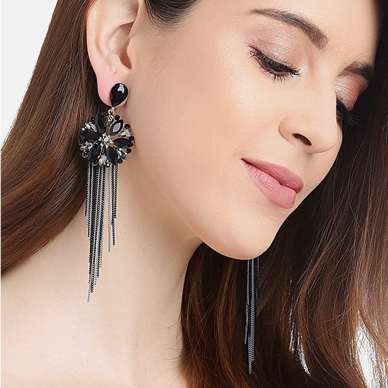 أقراط كريستال شرابة مصنوعة يدويا للفتيات والنساء