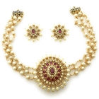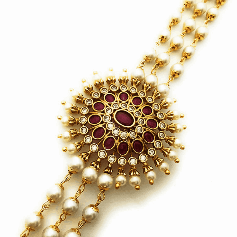 مطلية بالذهب AD الحجر مرصع 3 طبقة اللؤلؤ الرقبة قلادة مجموعة المجوهرات
