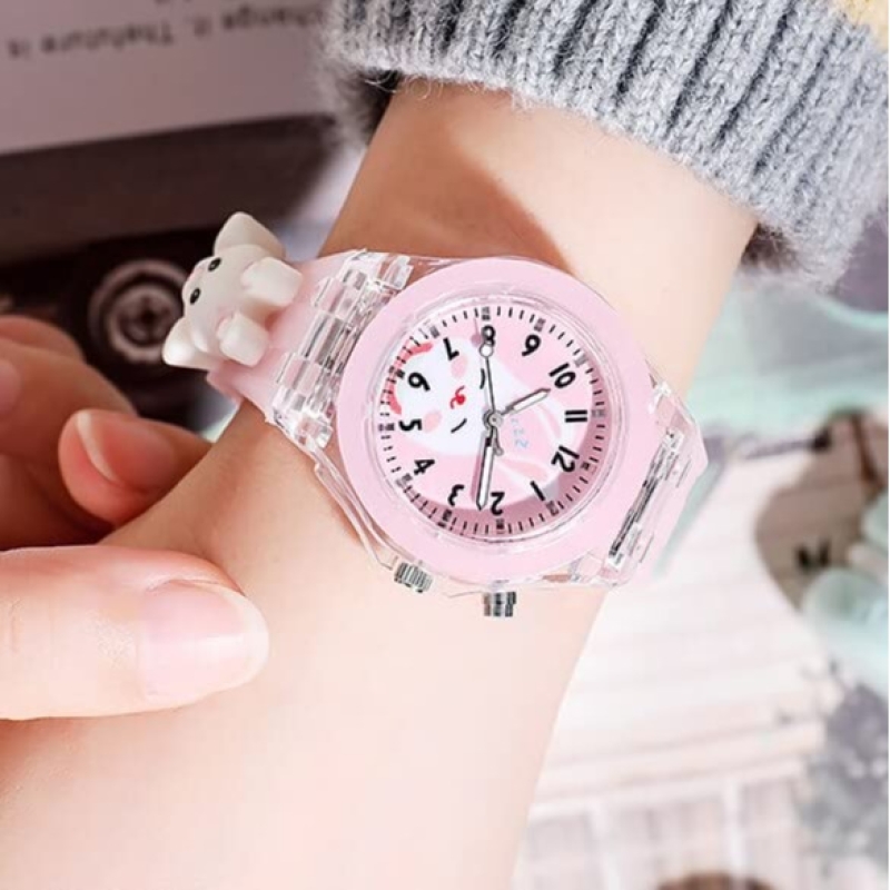LED مضيئة الطفل الاطفال الاطفال لطيف الكرتون أضواء متعددة الألوان ووتش للفتيات