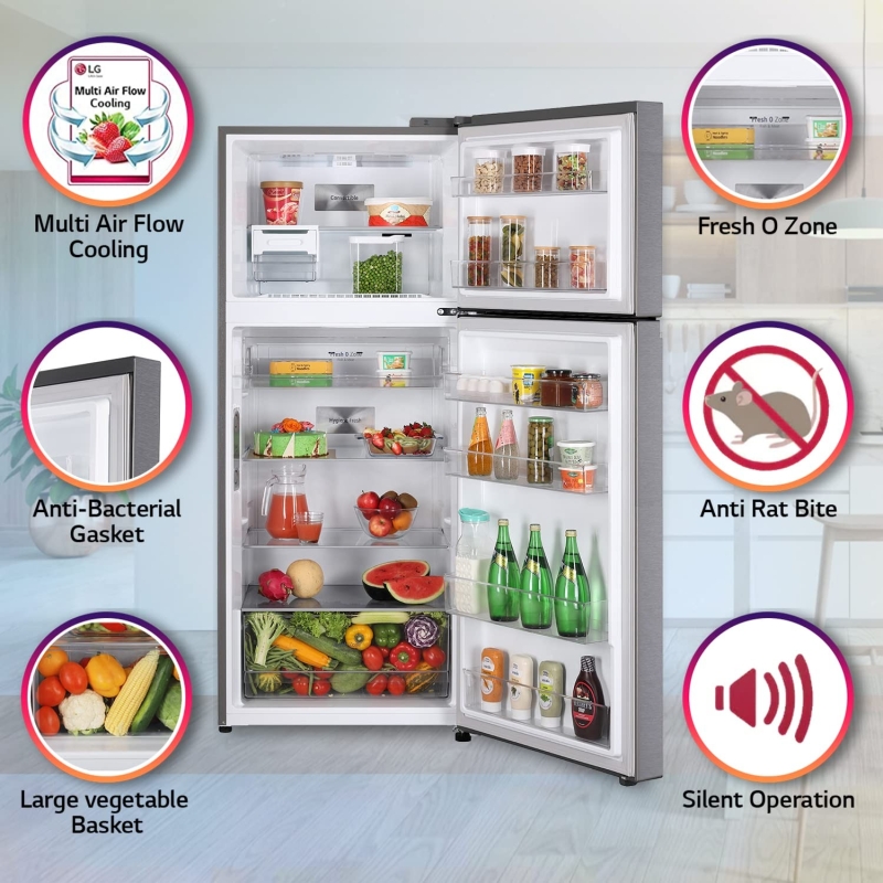ثلاجة إل جي 398 لتر 3 نجوم انفرتر ذكي خالي من الصقيع واي فاي ببابين