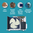 • Capacity (1.5 Ton): Suitable for medium-sized rooms (111 to 150 sq. ft), 618 CFM; Ambient Temperature: 52℃