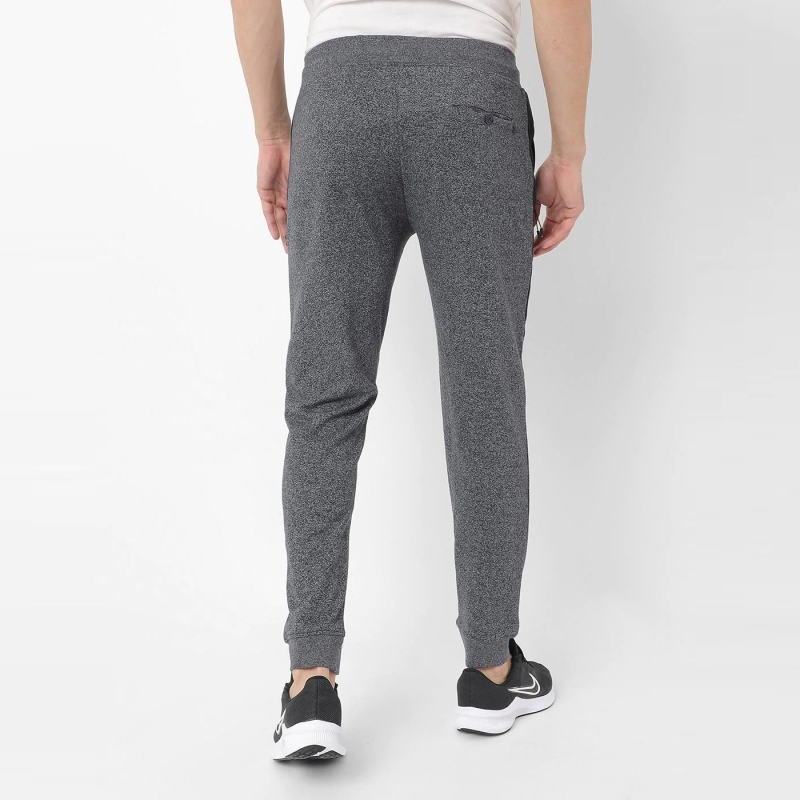 • Grey melange solid track pants, elasticated waistband with drawstring closure, 2 pockets.