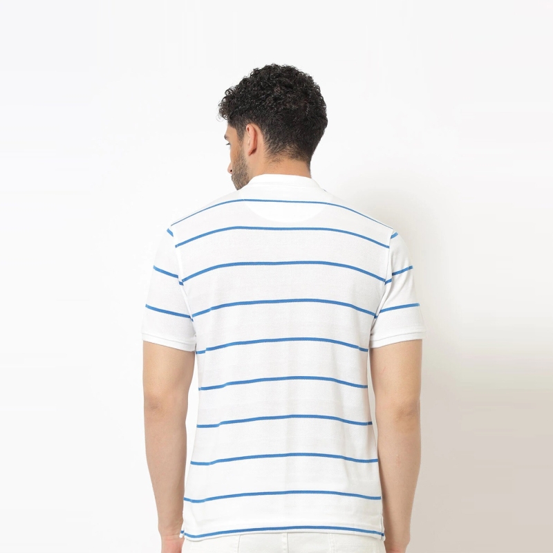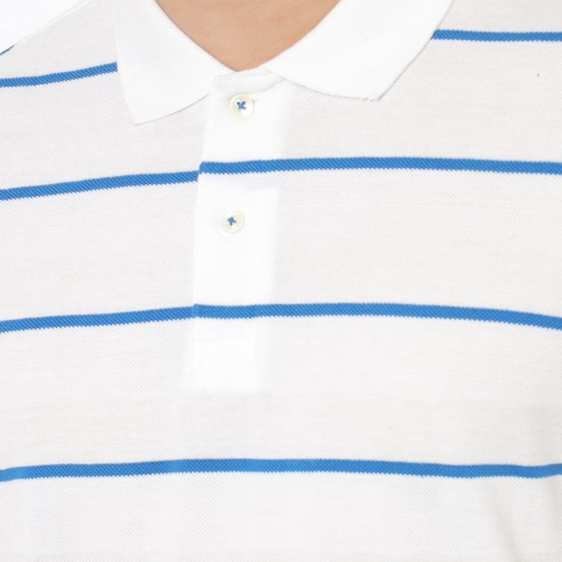Men White & Blue Striped Polo Collar Pure Cotton T-shirt