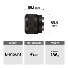 • Compact, lightweight design ideal for full-frame E-mount cameras, Aspherical element controls spherical aberration and coma