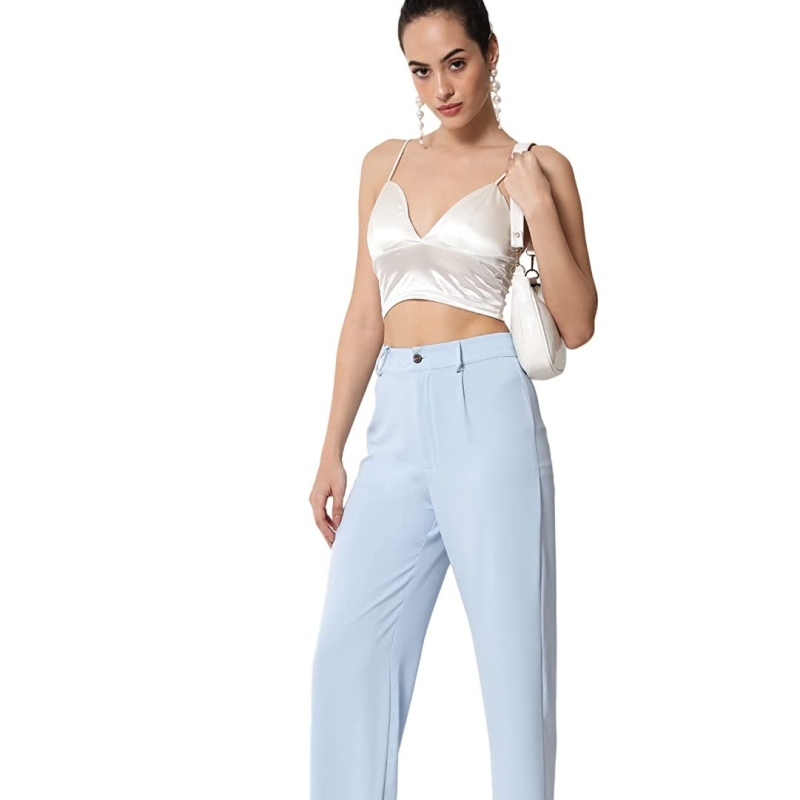 KOTTY المرأة الصلبة مزيج البوليستر بنطلون أزرق فاتح
