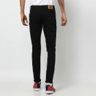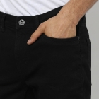 بنطال جينز أسود داكن اللون ب 5 جيوب متوسطة الارتفاع، مظهر نظيف، لا يتلاشى، يحتوي على زر وسحاب للإغلاق، وحزام خصر مع حلقات حزام