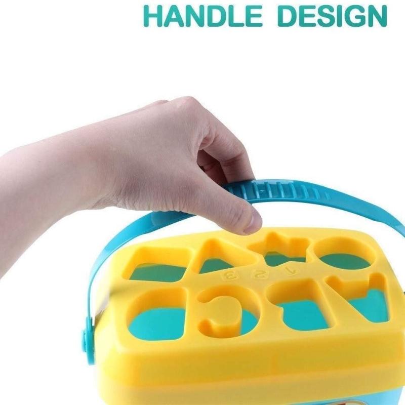 • Perfect interactive educational toy for for 1 year old and up; SHAPE SORTER BOX TOY: It comes with 16 shaped multiple color blocks.