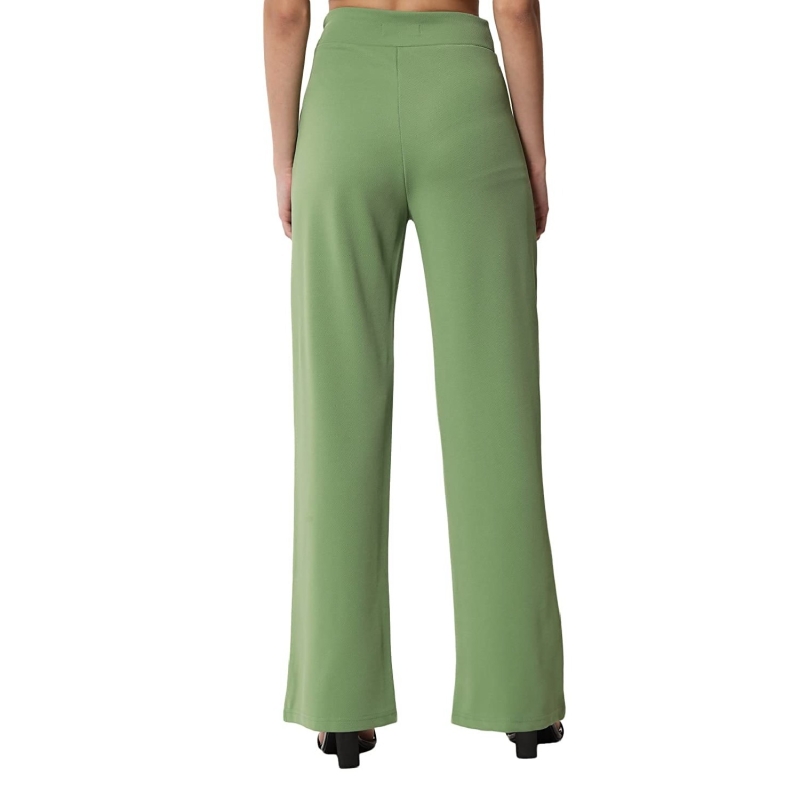 KOTTY Women Solid Polyester Blend Light Moss Green Trouser