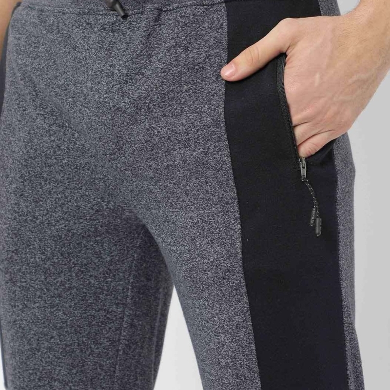 • Grey melange solid track pants, elasticated waistband with drawstring closure, 2 pockets.