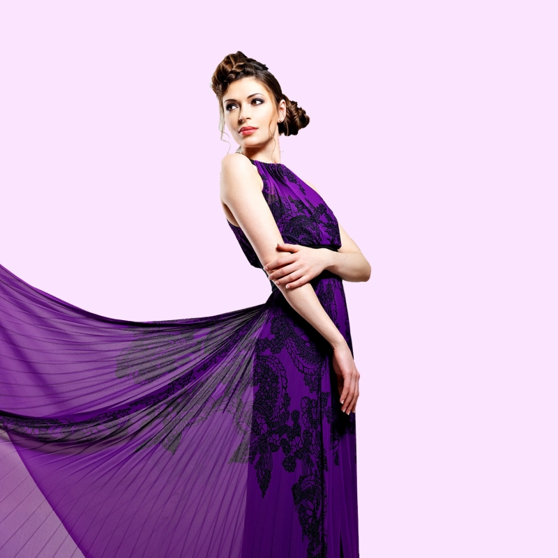 Purple solid maxi dress, has a V-neck, concealed zip closure, an attached lining, and flared hem